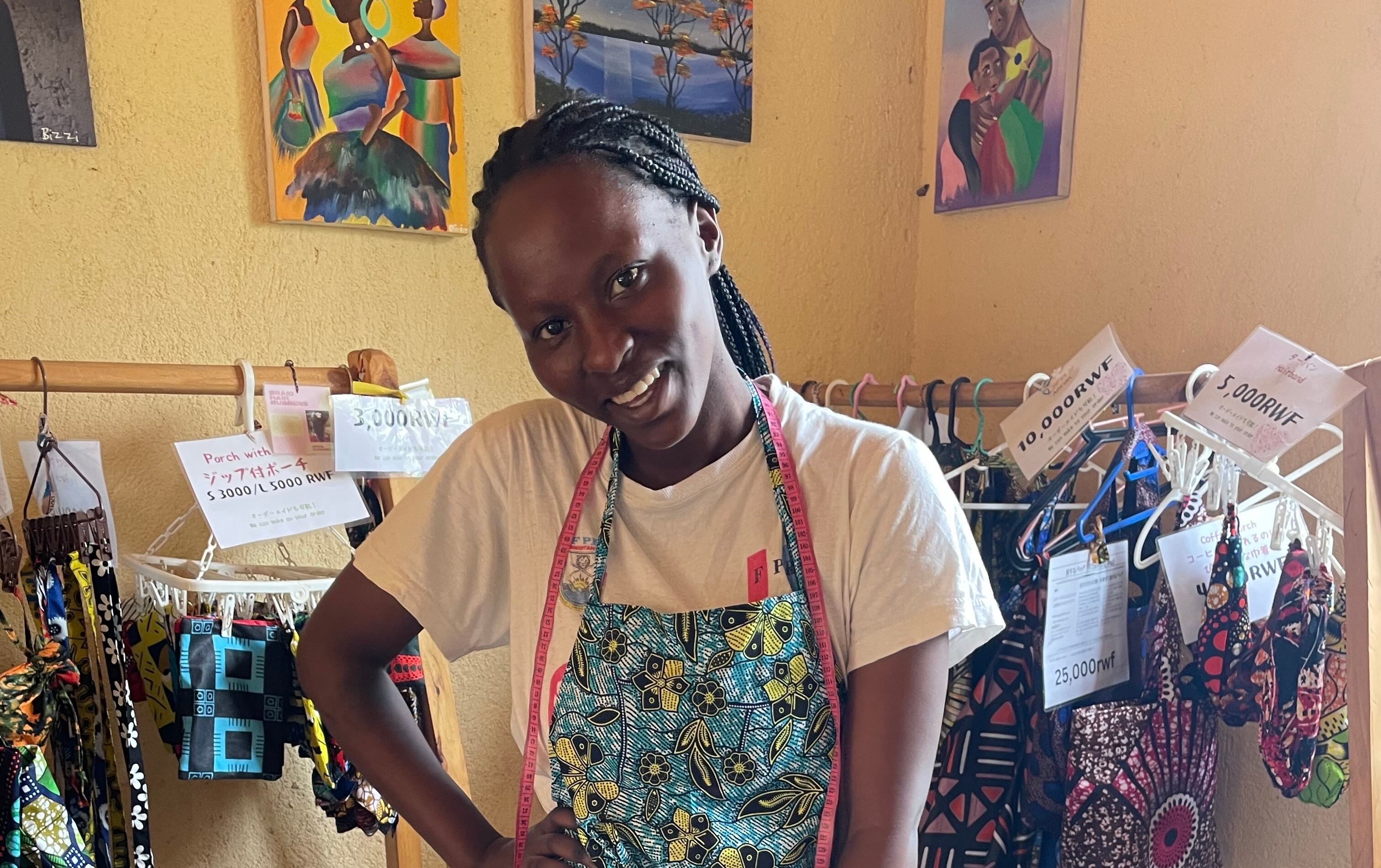 テイラーはルワンダの女性の一般的な職業で、キテンゲ(アフリカ布)などを使用して洋服や小物などを作る仕事です。しかし、ルワンダではこのテイラーの職が飽和状態にあるそうです。